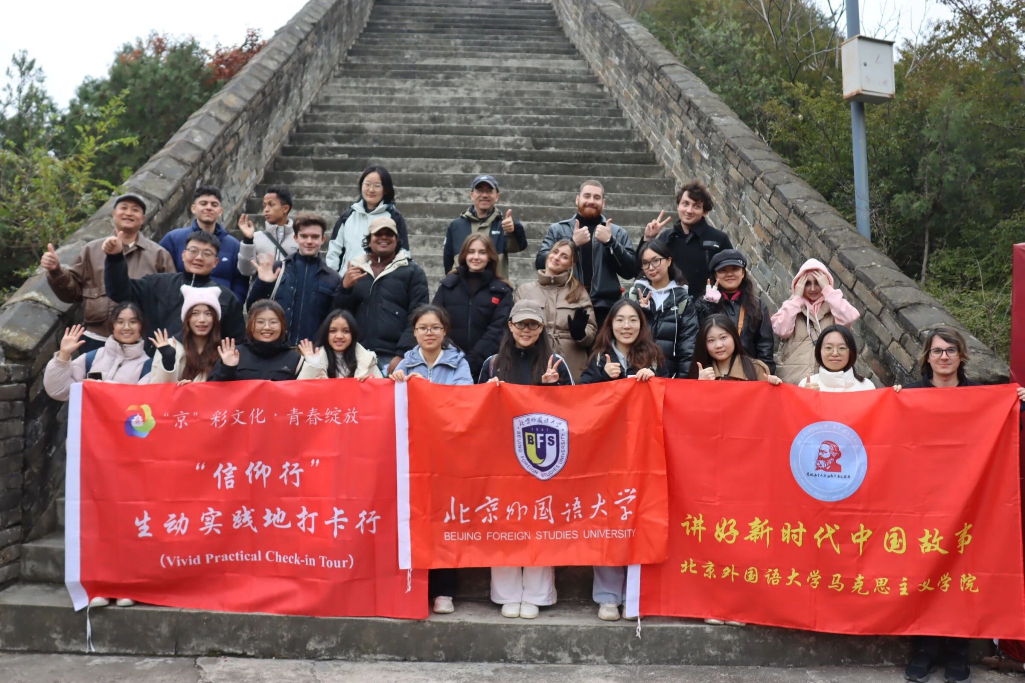 为深入学习贯彻习近平新时代中国特色社会主义思想,引导国际青年深刻感悟中华优秀传统文化的时代价值,pp电子游戏官网联合留学生办公室精心策划开展“‘京’彩文化 • 青春绽放”主题实践活动。本次活动以“从北京长城看全球——从‘历史脉络’到‘全球坐标’”为主线,组织来自国中院、国关学院两个学院的法国、俄罗斯、巴西、伊拉克、蒙古国、斯洛伐克、哥斯达黎加、马达加斯加、斯里兰卡等9个国家的13名留学生代表以及来自pp电子游戏官网、高翻学院、国关学院的12名北外学子共赴怀柔区黄花城水长城与响水湖长城景区,开启了一场富有深刻教育意义和时代内涵的实践研学之旅。