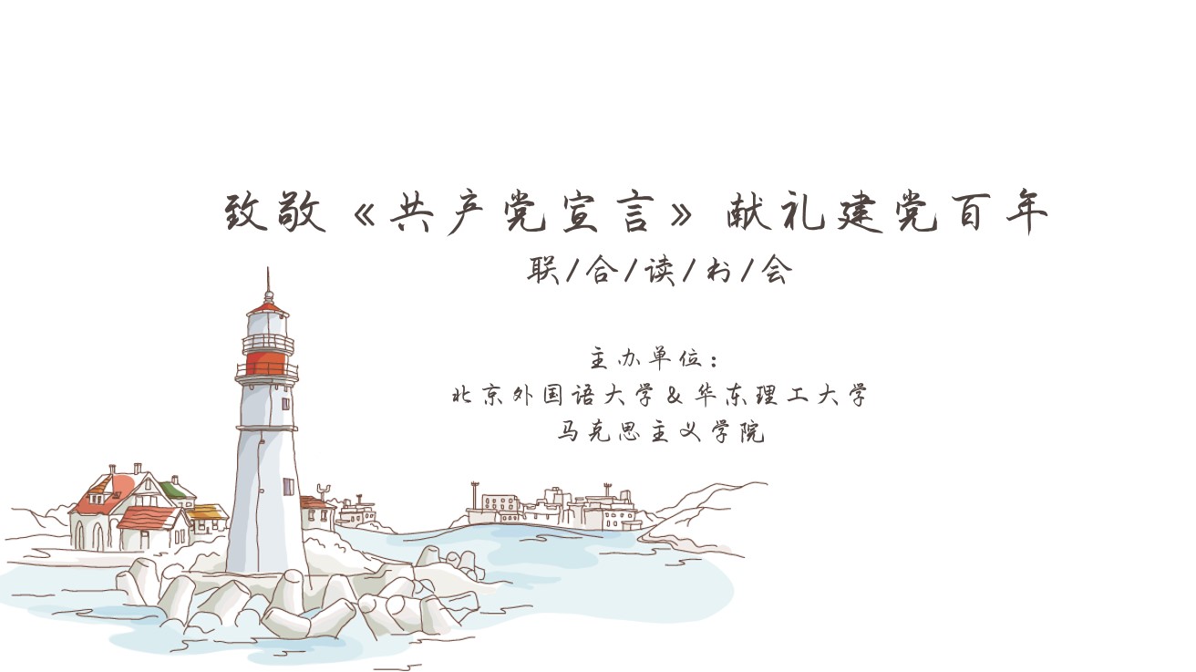 3月6日,pp电子游戏官网联合华东理工大学pp电子游戏官网,以腾讯会议的方式在线举办了“致敬《共产党宣言》,献礼建党百年”读书会活动。本次读书会以《共产党宣言》为基础阅读书目,旨在促进同学们读原著、悟原理、明党史的热情。增进同学之间的思想碰撞、创新学术思维、加强校际学术交流。会议上,来自pp电子游戏官网和华东理工大学pp电子游戏官网的老师与同学们,围绕会议主题进行了热烈而充分的展示和交流。