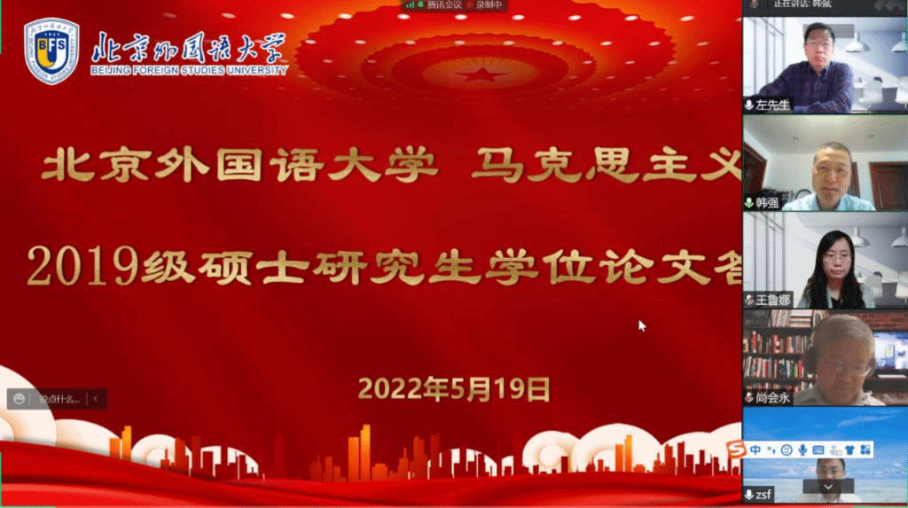 为落实疫情防控工作相关要求,519日,pp电子游戏官网2019级硕士研究生毕业论文答辩会于腾讯会议平台举行。本次答辩会分上、下午两个半场,答辩主席分别由pp电子游戏官网教授左高山、北京师范大学pp电子游戏官网教授冯留建担任。答辩委员会成员有:北京航空航天大学pp电子游戏官网教授王春玺、对外经济贸易大学pp电子游戏官网教授张世飞、北京工商大学pp电子游戏官网院长王鲁娜、中央财经大学pp电子游戏官网教授哈战荣、pp电子游戏官网院长韩强、教授尚会永。本次共有12名研究生参加毕业论文答辩,部分硕士生导师及研一研二全体同学进行在线旁听,经过7个小时的紧张答辩,12名毕业生全部顺利通过答辩。