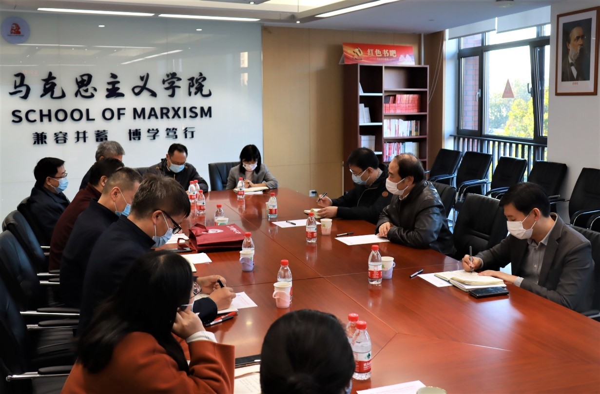 王定华书记和与会成员就具体问题进行交流,并对学院下一步工作提出了四点要求。一是更加关注师生身心健康。要引导师生积极参与体育活动,锻炼健康体魄。关心爱护学生,及时了解学生关切,回应合理诉求,排解成长烦恼;二是更加谋划重点马院建设。北京市重点建设马院是荣誉,也是任务和鞭策,要担负责任,通过办讲座、搞研讨、买图书、建课件、去参观、搞活动、出新书、办栏目等形式把学校加强马克思主义学科和学院建设的10项举措落实好,推动北京市重点马院建设产出更多标志性成果;三是更加做好北京市习近平新时代中国特色社会主义思想研究中心pp电子游戏官网研究基地的改革发展。要开展有组织的科研,积极组织校内力量进行科研联合攻关,产出更多高质量的成果;四是更加促进pp电子游戏官网建设行稳致远。要凝心聚力擘画马克思主义理论一级学科未来走向,对标学校“十四五”规划和“双一流”建设蓝图奋力前进。同时加强班子建设,进行年轻干部、后备人才和骨干教师的培养。