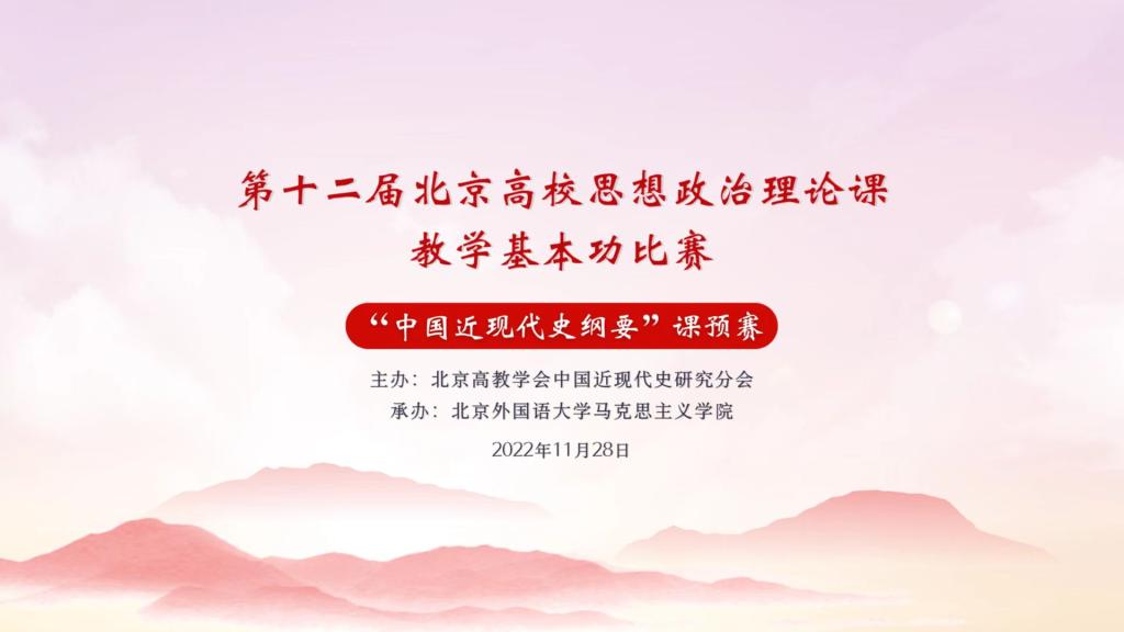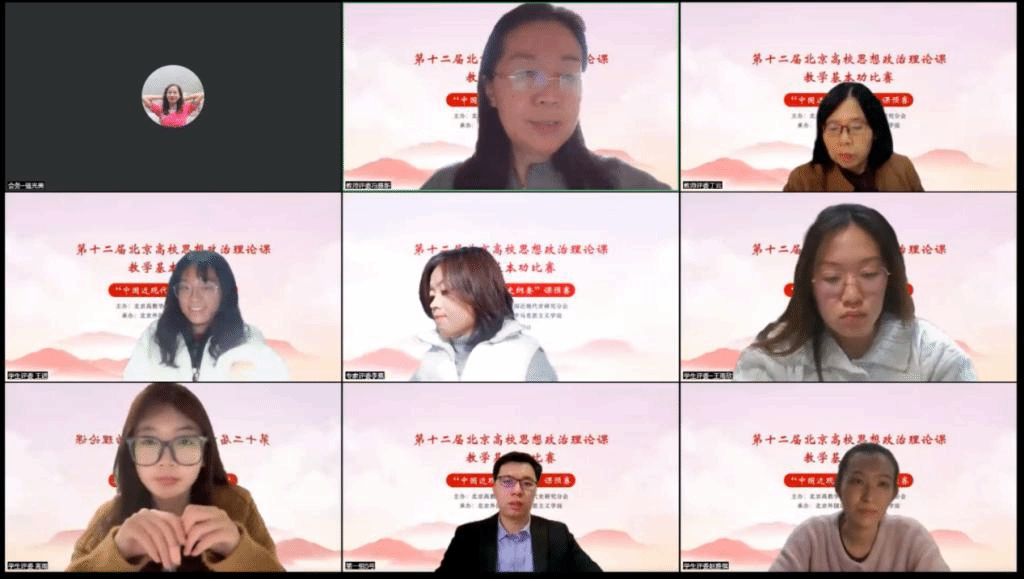 为深入学习宣传贯彻党的二十大精神,充分发挥思政课在推动党的二十大精神“三进”中的主渠道作用,经过紧张周密的筹备,由北京高教学会中国近现代史研究会主办、pp电子游戏官网承办的第十二届北京高校思想政治理论课教学基本功比赛“中国近现代史纲要”课预赛于11月28日在线上举行。来自北京大学、清华大学、中国人民大学、pp电子游戏官网等高校的33名青年思政课教师参加了比赛。