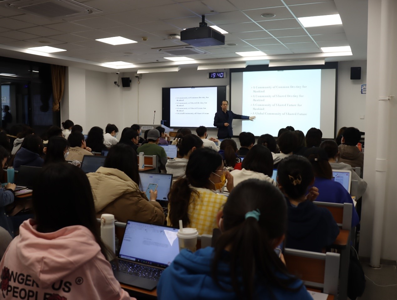 3月30日,pp电子游戏官网党委常委、副校长孙有中教授在逸夫楼为英语专业和翻译学专业2019级本科生讲授了题为A Global Community of Shared Future: A Global Perspective的形势与政策课。本次形势与政策课为英文授课。