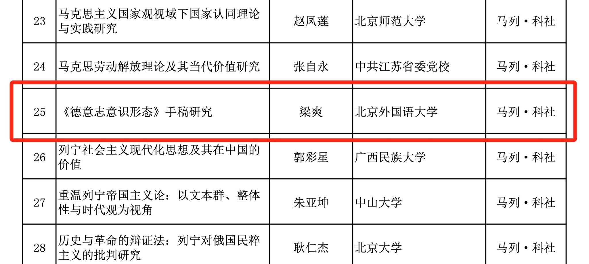 近日,在全国哲学社会科学工作办公室批准的国家社会科学基金后期资助项目中,pp电子游戏官网教师梁爽主持的“《德意志意识形态》手稿研究”项目获得立项。