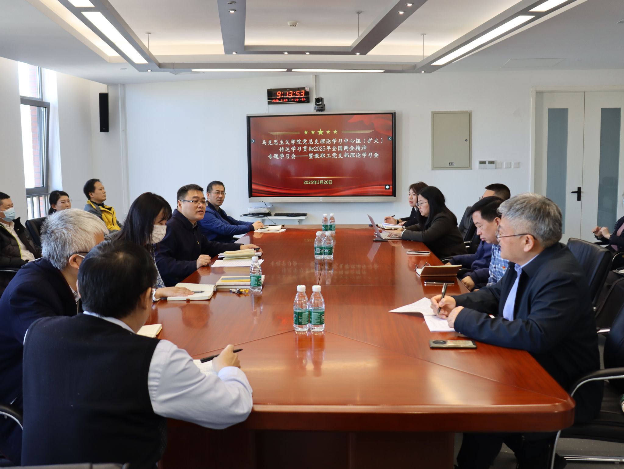 总支委员尚会永、教工支部王成诚、李永乐三位教师分别谈了关于2025年两会精神的学习心得。尚会永从民营企业的重要地位、政府对民营企业的支持、确保“两个健康”和促进学生就业四个方面分享了学习体会。王成诚分享了习近平总书记关于人工智能对教育的影响的讲话,认为思政课要培养学生提出问题、分析问题、解决问题的能力,落实唯物辩证法的世界观和方法论。李永乐从经济增长和改革动能的辩证统一关系、传统产业和新兴产业的协调发展、科技自立自强的路径探索分享了学习体会。