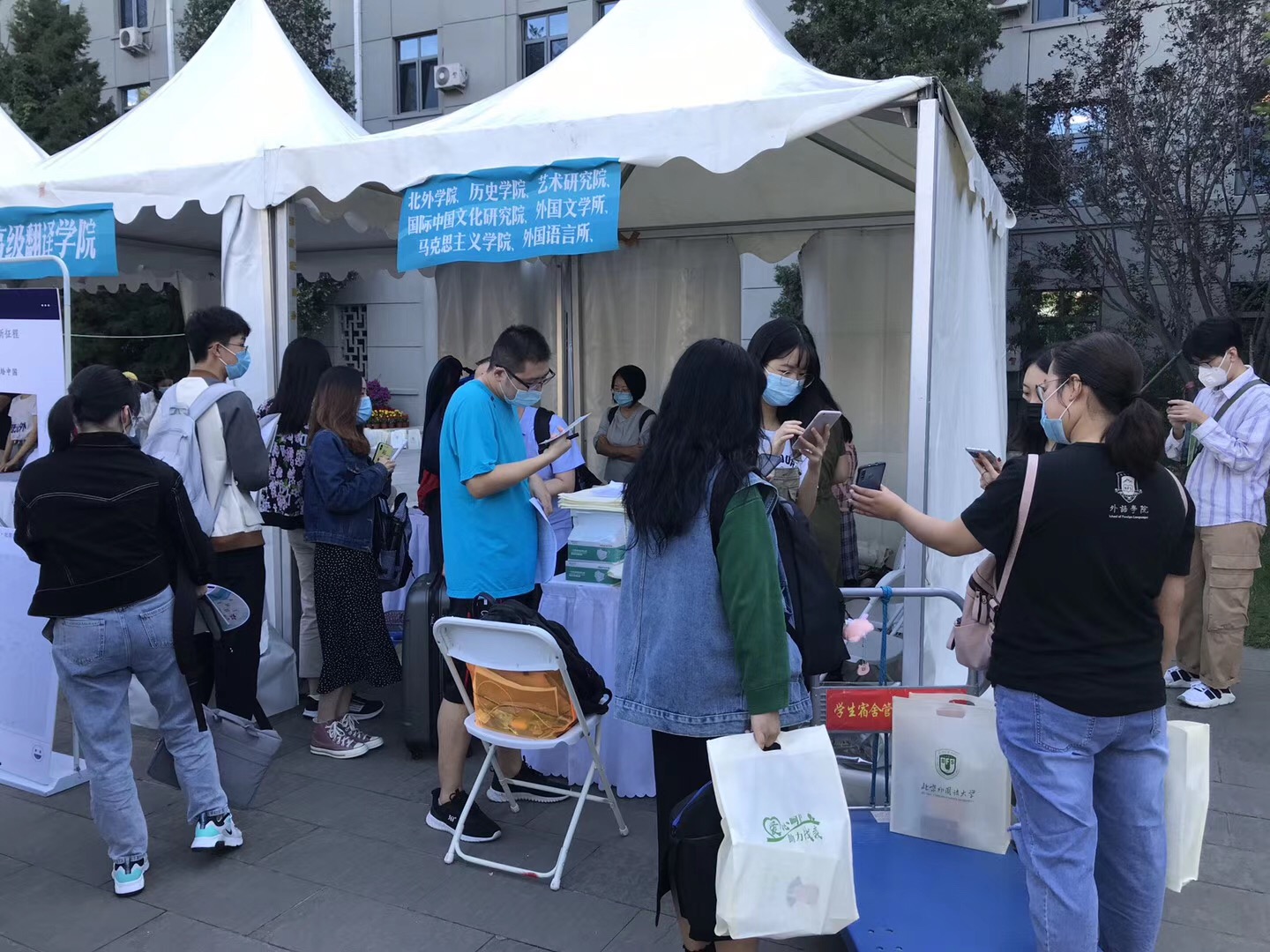 迎新持续至下午3点,pp电子游戏官网顺利完成了2020年秋季迎新工作的首要环节,迎新小分队全体成员与2020级新生进行合影留念。“既然选择了远方,便只顾风雨兼程”,饱含对学习的期许和坚定,怀揣对未来的抱负和梦想,20级的小萌新即将踏上新的征程,愿你们在未来三年里,不负时光,乘风破浪,北外马院将与你们一起扬帆起航!