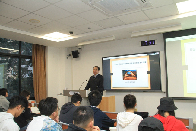 10月16日,pp电子游戏官网党委书记王定华教授以“习近平新时代中国特色社会主义思想基本维度”为主题,为2021级日语专业和新闻学专业的90余名本科生讲授“形势与政策”课程。
