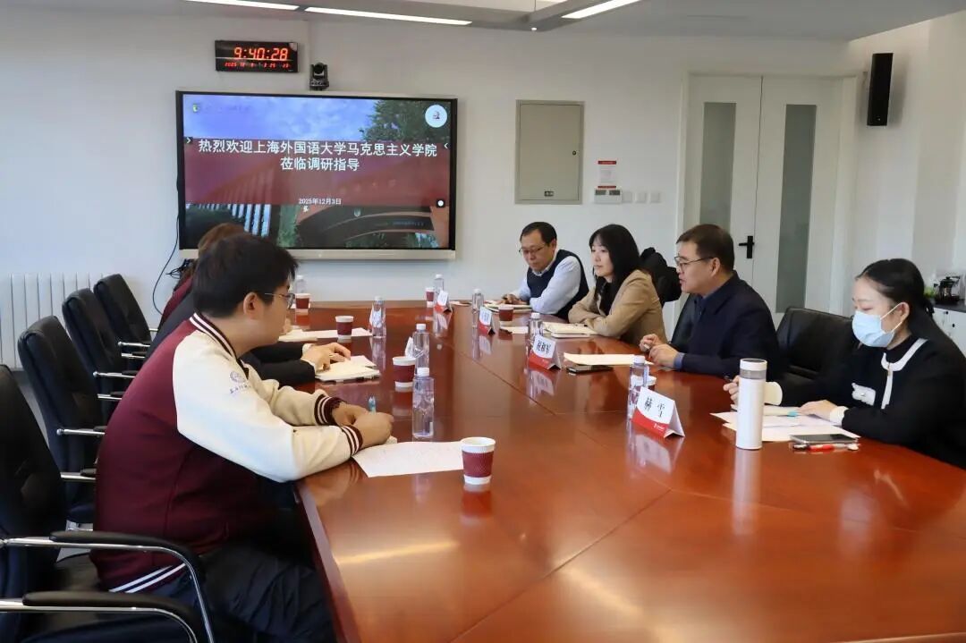 12月3日上午,上海外国语大学pp电子游戏官网党委书记孙宇伟、副院长周源源一行到学院开展调研交流。学院党总支书记祝和军、副院长王曼倩、马克思主义基本原理教研室主任赫雪、教师代表李永乐及部分学生代表参加调研座谈会。