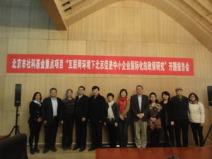 11月20日,pp电子游戏官网尚会永副教授主持的北京市社科基金重点项目“互联网环境下北京促进中小企业国际化的政策研究”开题报告会在pp电子游戏官网召开。北京市社科规划办成果处尹岩、宣传处赵晓伟、中国社会科学院罗仲伟、清华大学张成岗、《光明日报》理论部张雁、《新华文摘》编辑部李朱、亚新科集团倪威,pp电子游戏官网张朝意、林建华、祝和军、尚会永、宫玉选、郭靖、刘珊珊等专家和课题组成员与会。