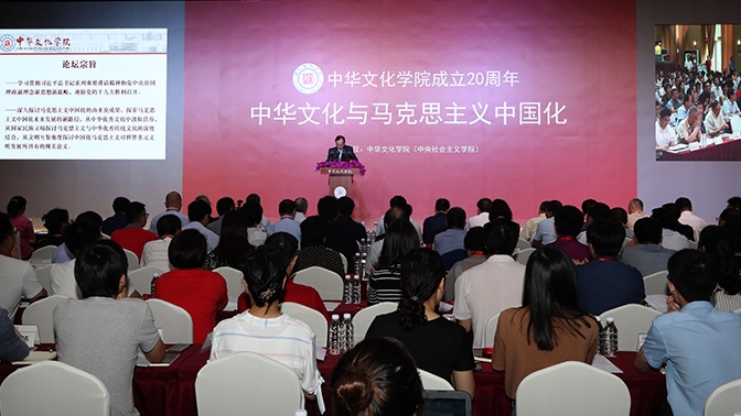 为学习贯彻习近平总书记系列重要讲话精神,在中华文化学院(中央社会主义学院)在建院20周年之际,举办“中华文化与马克思主义中国化”高端学术论坛。中央党校原副校长李君如、中国社科院原副院长李慎明、清华大学国学院院长陈来等14位马克思主义理论和中华传统文化研究领域的著名学者出席会议并发言。中央社院党组书记、第一副院长潘岳和领导班子成员出席,来自在京各教研机构及中央社院学员代表共400多人参加论坛。