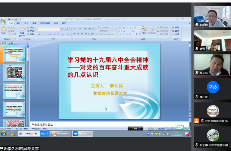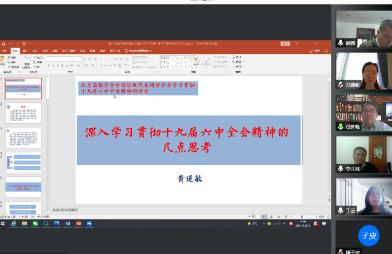 12月12日下午,北京高教学会中国近现代史研究会学习党的十九届六中全会精神研讨会在线上举行,会议由pp电子游戏官网和北京高校中国特色社会主义理论研究协同创新中心承办。来自pp电子游戏官网、北京师范大学、首都经贸大学、首都师范大学和北京工业大学等多所高校的50余名专家学者与会。