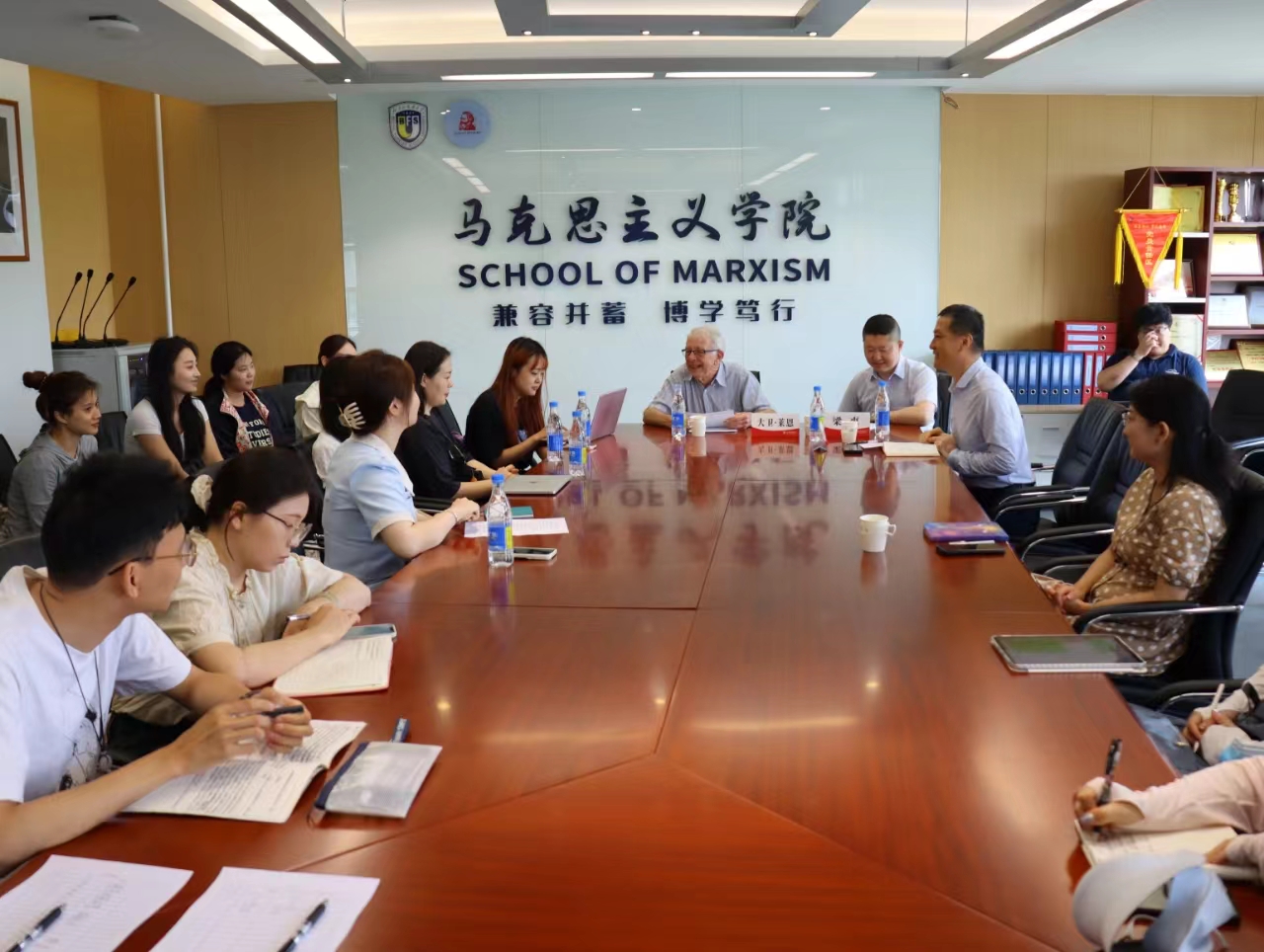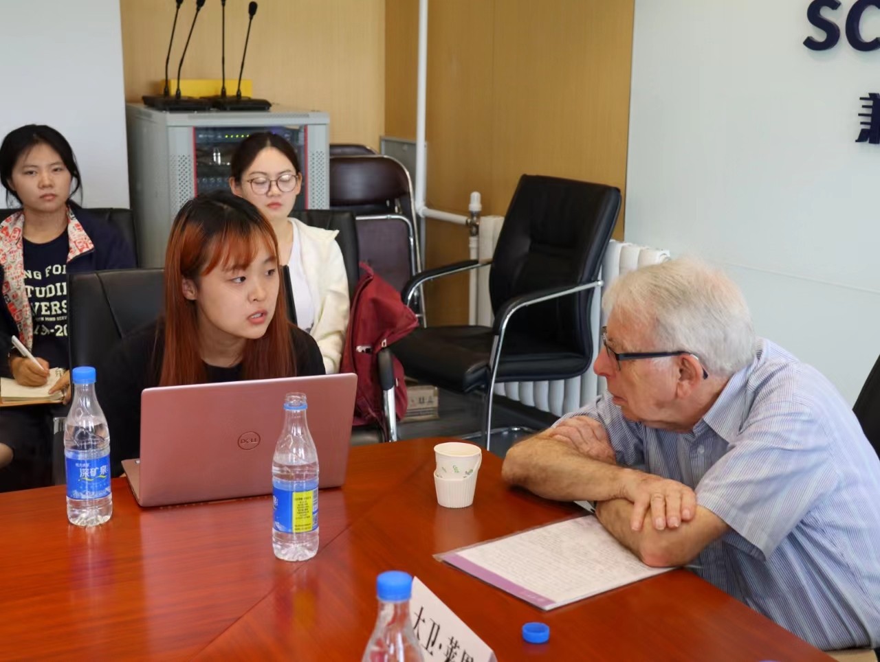 2024年5月18日,应pp电子游戏官网邀请,剑桥大学荣休教授、英国社会科学院院士大卫·莱恩在国内大厦1号楼608会议室,围绕自身学术路径的选择与学习方法、剑桥大学人才培养模式、西方社会主义发展态势等问题同北外师生座谈。座谈会由pp电子游戏官网院长韩强主持,pp电子游戏官网教师梁爽担任学术翻译,pp电子游戏官网教授尚会永等教师代表和来自pp电子游戏官网、国际新闻与传播学院等院系的学生代表30余人参加了座谈会。此次座谈会是继5月17日莱恩教授在北外的学术报告“全球新自由资本主义及其替代方案”之后的第二场活动。