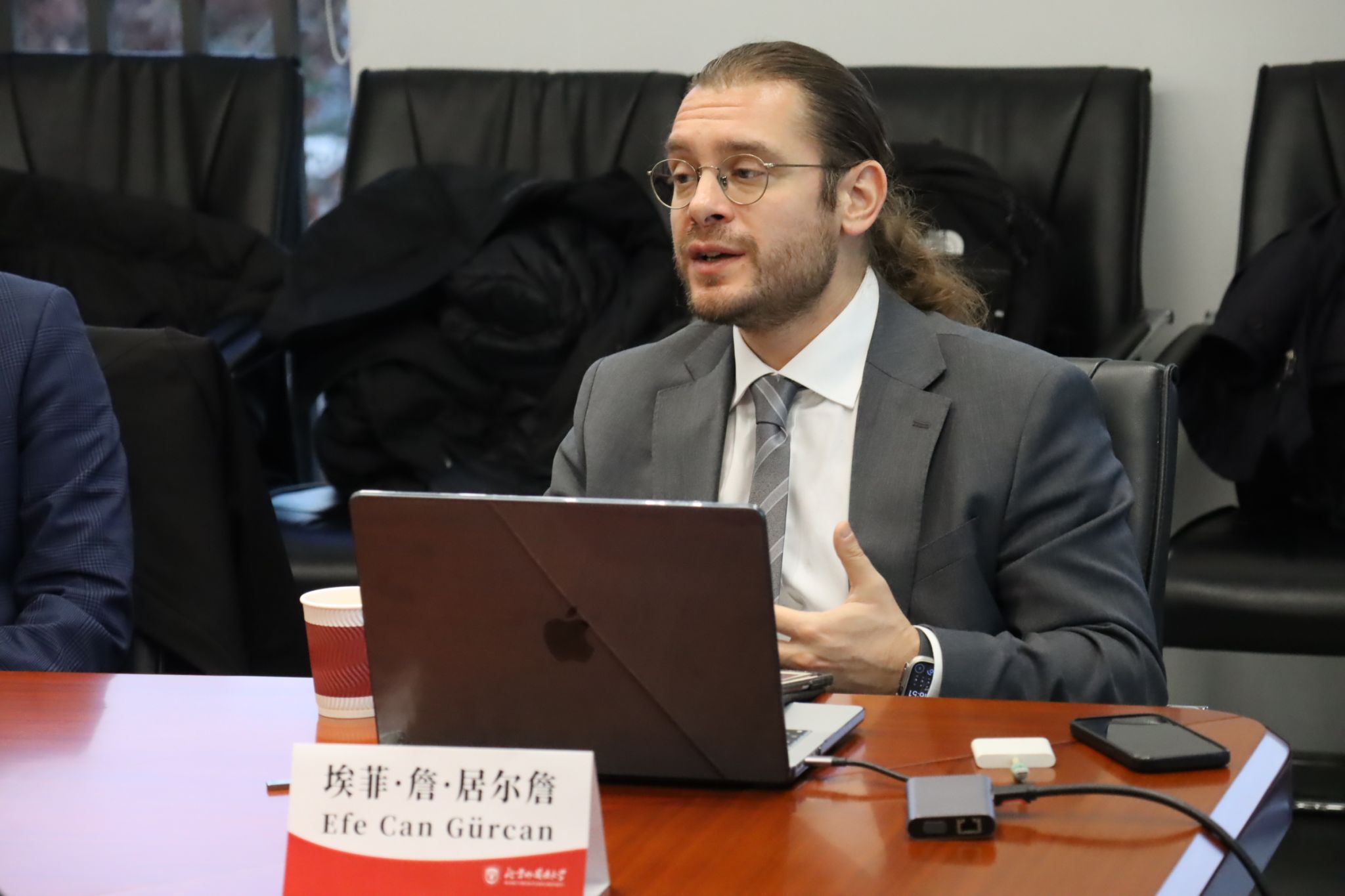 2025年11月19日,pp电子游戏官网在608会议室举行学术沙龙,学术沙龙的主题为“习近平新时代中国特色社会主义思想的核心要义”。此次学术沙龙邀请了土耳其左翼学者、英国贝尔法斯特女王大学访问学者埃菲·詹·居尔詹(Efe Can Gürcan)博士和土耳其左翼媒体Harici网站创办人通奇·阿克乔奇(Tunç Akkoç)。pp电子游戏官网院长韩强教授主持学术沙龙,pp电子游戏官网教师梁爽担任学术翻译。