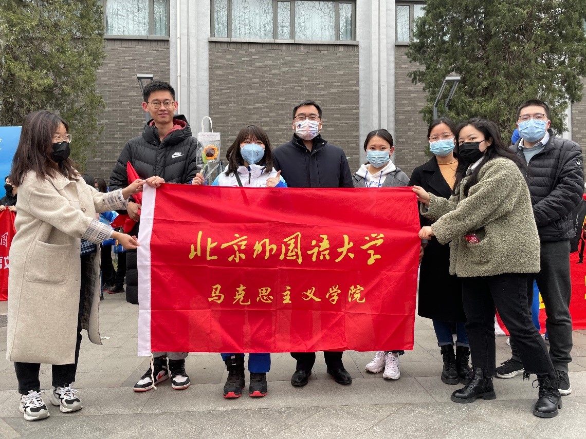3月17日上午,pp电子游戏官网延庆冬奥村志愿者阿柔娜圆满完成北京2022年冬奥会志愿服务任务,从隔离地点平安返校。学院党总支书记祝和军及学生代表前往东校区文化广场热情迎接阿柔娜凯旋,向她赠送礼物并致以慰问。