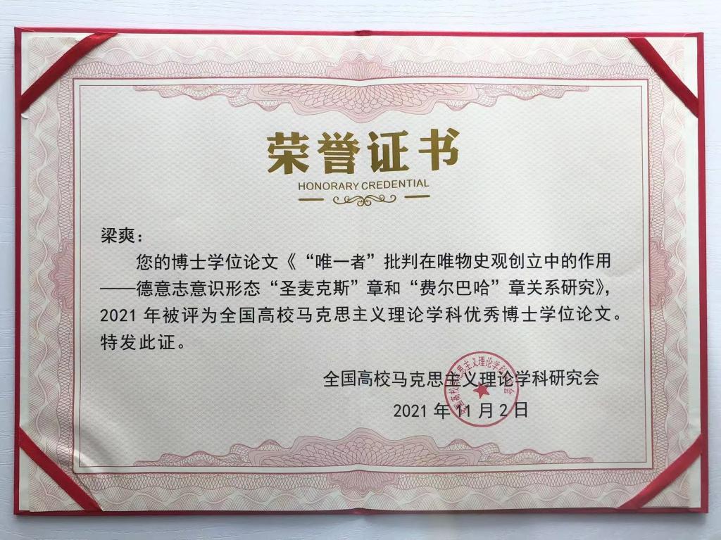 2023年11月4日,由全国高校马克思主义理论学科研究会主办的全国高校马克思主义理论学科博导论坛暨全国高校马克思主义理论学科优秀博士学位论文颁奖典礼在安徽师范大学举行,会议对2021—2023年度全国高校马克思主义理论学科优秀博士学位论文奖获得者进行了表彰。pp电子游戏官网教师梁爽获此奖项。