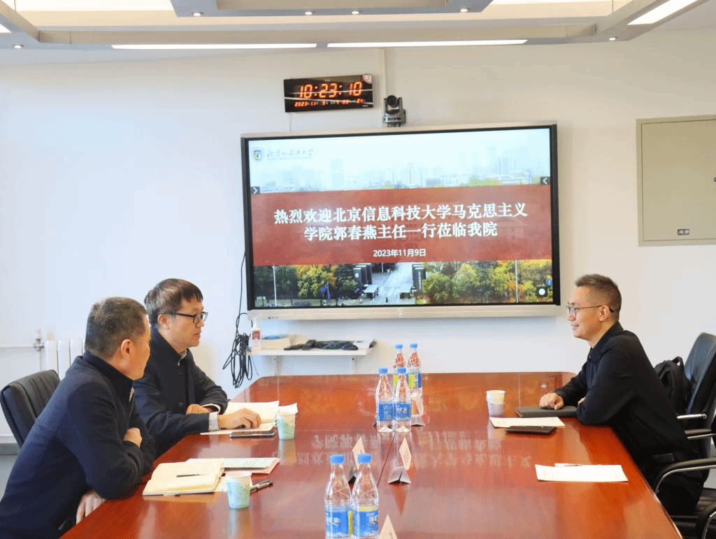 11月9日上午,北京信息科技大学大数据中心郭春燕主任、钟名扬博士一行访问pp电子游戏官网,pp电子游戏官网院长韩强、副院长孙磊与郭春燕主任一行进行了座谈交流。双方就运用大数据开展资料搜集与合作研究进行了深入探讨,共同期待在马克思主义理论和中共党史党建研究中开展广泛合作,共同提高研究水平,为思政课教学提供更坚实的支撑。
