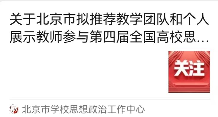 近日,根据《教育部办公厅关于开展第四届全国高校思政课教学展示活动的通知》,经全市各高校推荐、资格审查、专家评审,pp电子游戏官网李永乐及其教学团队的《马克思主义基本原理》课程被北京市学校思想政治工作中心推荐,参加全国高校思政课教学展示活动。