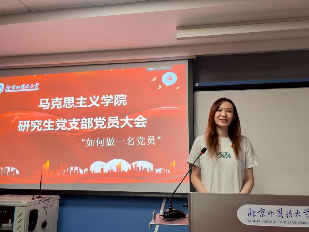 2022级硕士研究生、中共党员刘温馨从能为、应为、勇为三个方面,阐述对“如何做一名党员”的理解。刘温馨表示,作为当代研究生党员,特别是作为学习马理论大方向的青年党员,要做到能为、做好应为、积极勇为,在担当中历练、在尽责中成长,以青春之我、奋斗之我,为民族复兴铺路架桥,为祖国建设添砖加瓦。