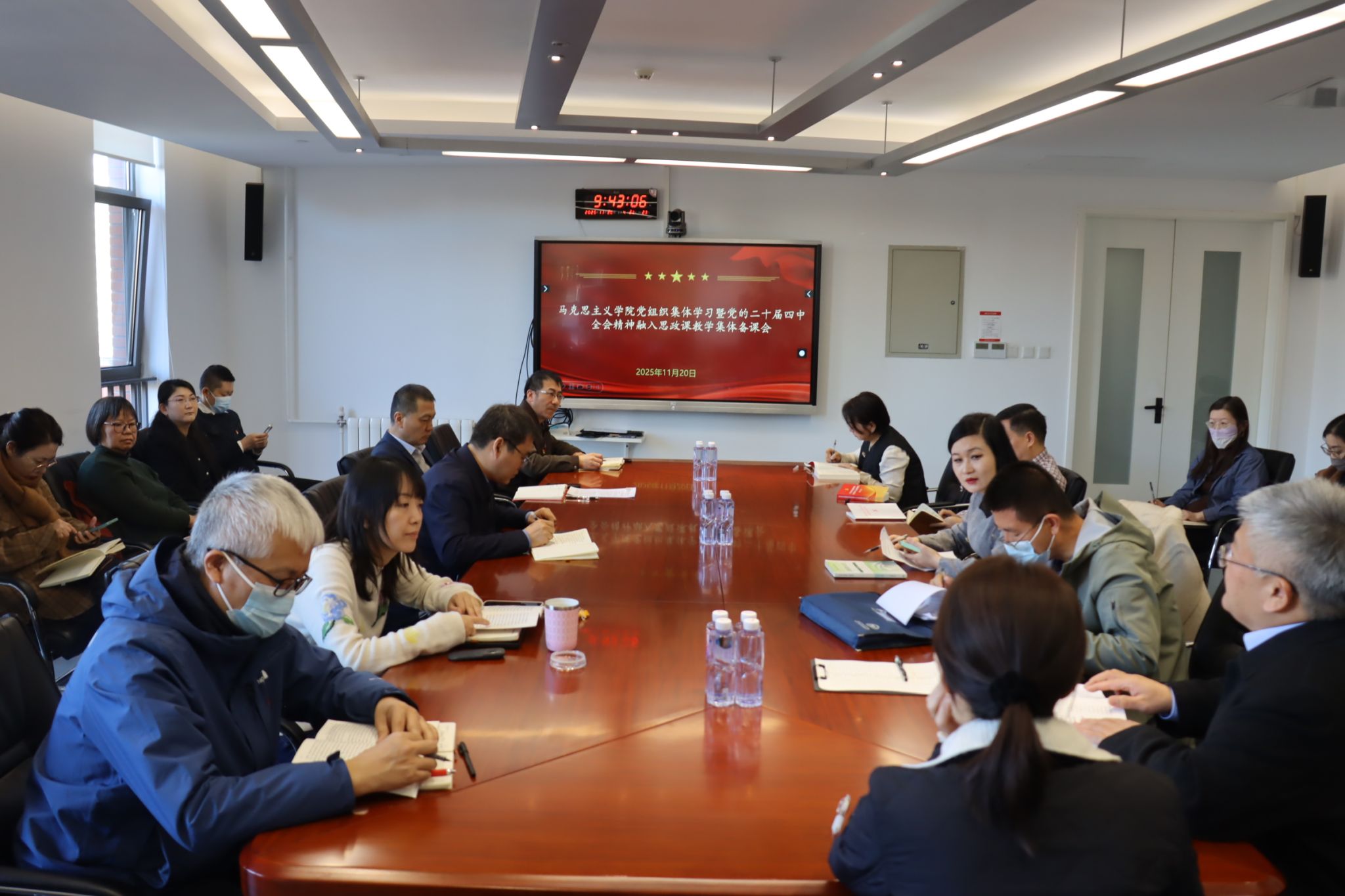 11 月 20 日上午,马院党总支开展集中理论学习暨党的二十届四中全会精神融入思政课教学集体备课会。学院班子成员,全体思政课教师参加会议。会议由学院党总支组织员王浩主持。