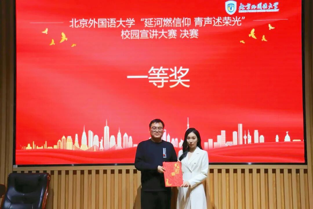 周倩为比赛致辞。她鼓励北外学子立足校史与专业优势,锤炼跨文化叙事能力,在理论与实践中涵养家国情怀、拓展全球视野,以青年之声讲好中国故事。